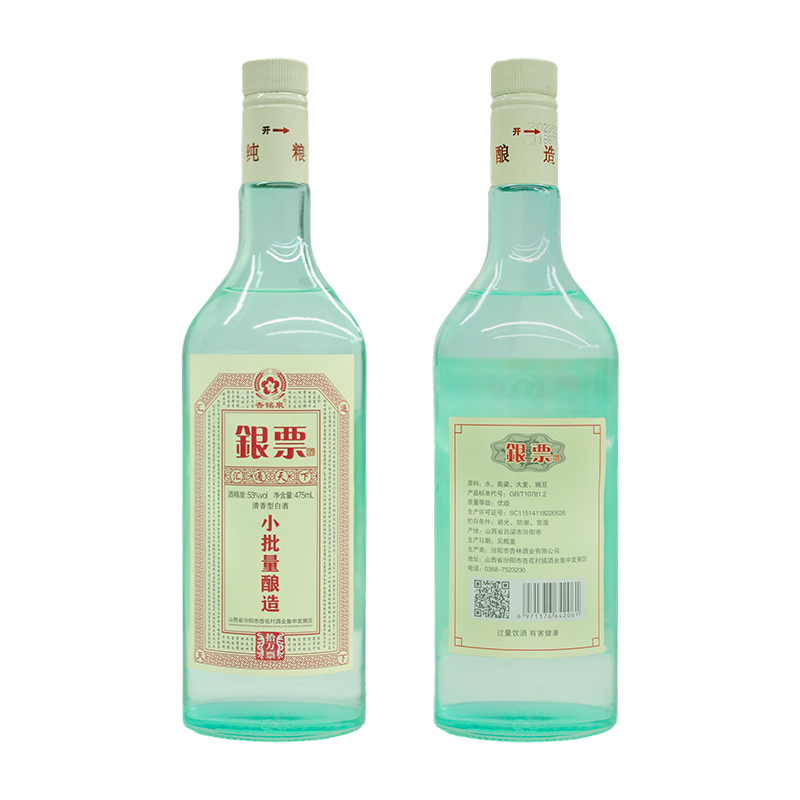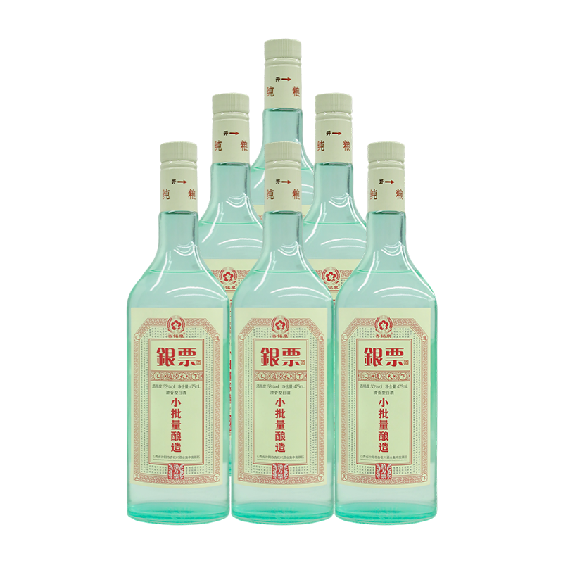山西杏花村 杏铭泉 银票 清香型白酒 53度 475ml*6瓶 整箱